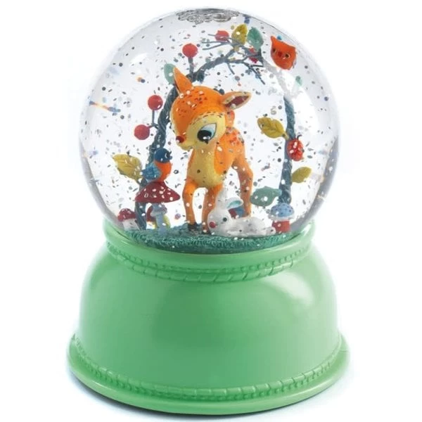 Djeco nachtlampje sneeuwbol hert is een betoverende kinderlamp en sneeuwbol gecombineerd tot een prachtig nachtlampje. De sneeuwbol bevat een wondermooi tafereel van een lief hertje en haar bosvrienden, die vrolijk door het bos huppelen terwijl er volop glitters rondom hen heen dwarrelen en het lampje steeds van kleur veranderd. Djeco nachtlampje sneeuwbol hert brengt een zacht licht en warme betoverende gloed in elke kinderkamer! Een echte musthave!