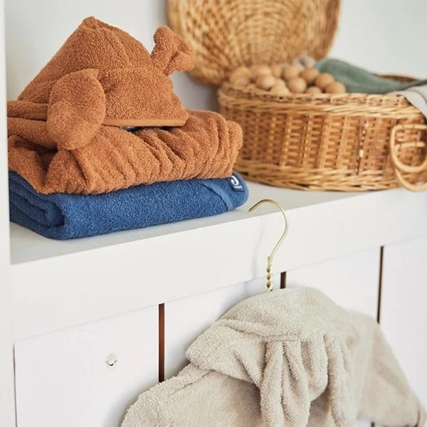 Met deze heerlijk zachte badcape van badstof 75x75cm Jeans Blue, droog je jouw kleintje fijn af zodat het niet te snel afkoelt. De zachte badcape is gemaakt van 100% katoen, neemt gemakkelijk vocht op en is zacht voor de huid. Hang de badcape na gebruik gemakkelijk op aan het lusje.