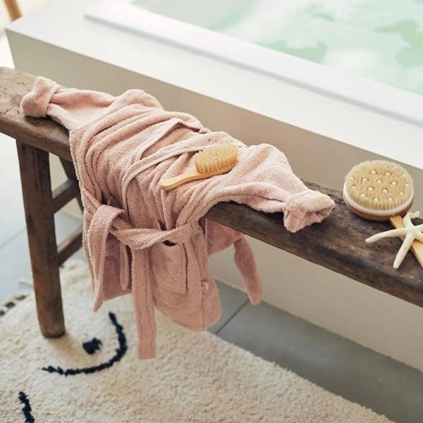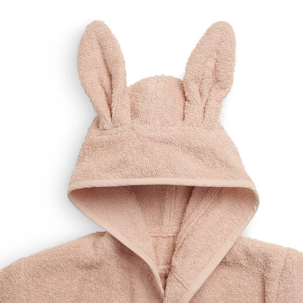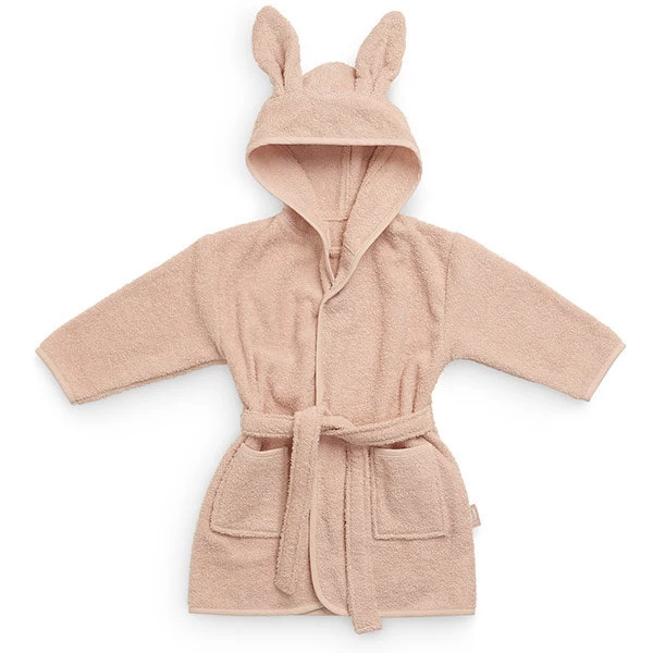 Deze badjas in zachte badstof en mooie Pale Pink kleur is perfect om te gebruiken na het baderen, douchen of zwemmen. De badjas heeft een capuchon met schattige oren en houdt je kindje lekker warm. De badjas sluit eenvoudig met drukknopen en een lint. Heel handig dus voor kindjes van 1-2 jaar.