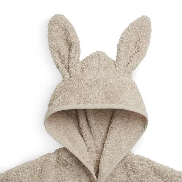Deze badjas in zachte badstof en mooie Nougat kleur is perfect om te gebruiken na het baderen, douchen of zwemmen. De badjas heeft een capuchon met schattige oren en houdt je kindje lekker warm. De badjas sluit eenvoudig met drukknopen en een lint. Heel handig dus voor kindjes van 3-4 jaar.
