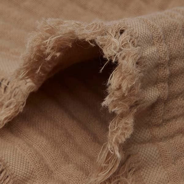 Heerlijk wegdromen onder dit Muslin Fringe deken 75x100cm Biscuit. Een fijn dekentje met franjes in een heerlijk zachte hydrofiele muslin stof, ideaal voor de zomer, maar ook fijn om te gebruiken als extra deken in combinatie met een slaapzak.