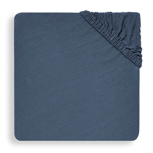 Met hoeslaken jersey 40x80cm Jeans blue, bescherm je de matras van je kindje. Het hoeslaken is stretchy en zacht. Voor de beste bescherming kun je hem gebruiken in combinatie met een molton hoeslaken. De kleur van dit hoeslaken is perfect te combineren met heel wat andere lakens en dekens. Het hoeslaken is gemaakt van 100% jersey katoen.