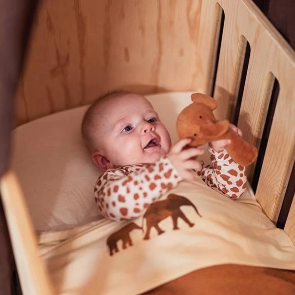 Met laken 120x150cm Savannah, zorg je ervoor dat jouw kindje zich geborgen voelt bij het instoppen in bed. Het laken is gemaakt uit 100% katoen en voorzien van een mooie print. Perfect combineerbaar in elke interieur met leuke kussens en andere decoratie.