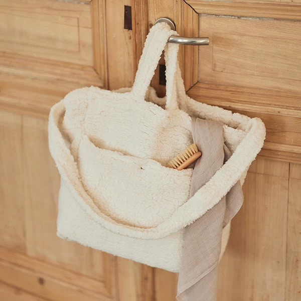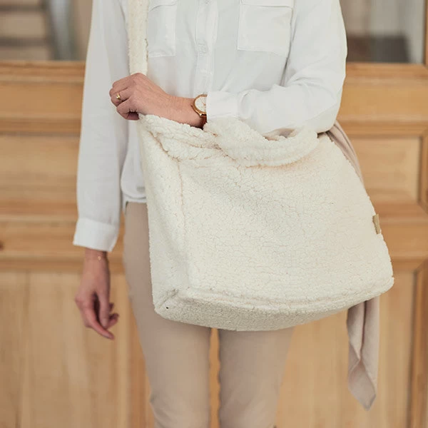 Deze onweerstaanbaar zachte luiertas van Teddy Cream White heeft genoeg opbergruimte om onderweg álles mee te nemen voor de verzorging van je baby. Het grote vak van deze verzorgingstas maak je gemakkelijk dicht met de handige magneetsluiting. Helemaal klaar om op pad te gaan! Met de de lange hengsels draag je deze superzachte luiertas fijn over je schouder of in je hand met het korte hengsel. De verzorgingstas wordt standaard geleverd met een handig verzorgingsmatje en een flessenwarmer. Verwijder de bodem uit de tas en je kunt hem gemakkelijk wassen.