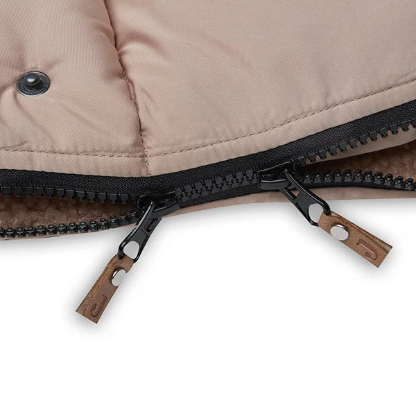 Met deze mooie voetenzak voor de buggy en wandelwagen in prachtige Biscuit kleur houd je jouw kleintje lekker warm. Een echte musthave voor de koude winterdagen. Deze voetenzak heeft openingen voor een 3 en 5 punts gordel, zodat de gordels van de buggy of wandelwagen er doorheen kunnen. Je kunt de voetenzak openen met de rits, welke beide kanten op te gebruiken is zodat je jouw kleintje gemakkelijk in en uit kan halen. Aan de achterkant van de voetenzak zit een handige kap zodat je deze om de hoofdsteun van de buggy kan vouwen. Op deze manier blijft de voetenzak goed zitten. De voetenzak is waterafstotend zodat je kindje lekker warm en droog zit!