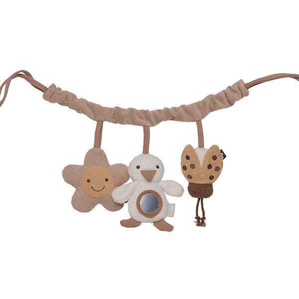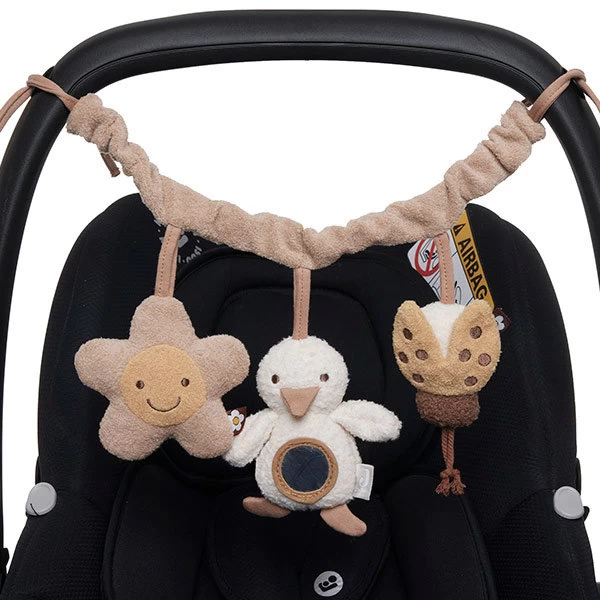 Wagenspanner Spring Garden is ideaal om je baby te vermaken tijdens een wandeling met de kinderwagen of een ritje in de auto. De wagenspanner ziet er super schattig uit en stimuleert de ontwikkeling van je kindje! Zo heeft de wagenspanner 3 leuke knuffeltjes: een bloemetje, een eendje en een lieveheersbeestje. Alle knuffeltjes hebben een knisperelement. Het eendje heeft daarnaast nog een spiegel op zijn buikje. Het lieveheersbeestje heeft een zacht belletje. Dit zal zorgen voor urenlang vermaak! Je kunt de wagenspanner gemakkelijk aan de kinderwagen of Maxi Cosi bevestigen.