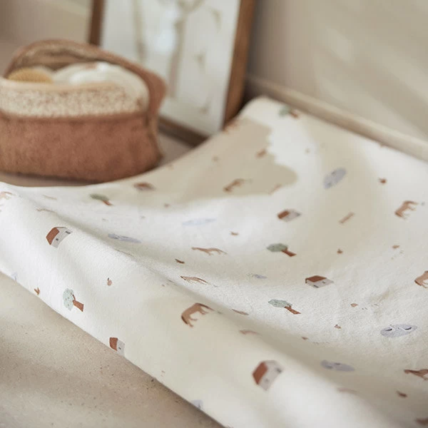 Met deze jersey waskussenhoes Farm, verschoon je jouw kleintje in alle zachtheid. De hoes past perfect over menig standaard verzorgingskussen en is heerlijk zacht, gemaakt uit 100% jersey katoen. Aankleden, uitkleden en verschonen is super fijn op deze aankleedkussenhoes.