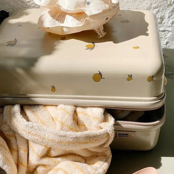 Deze praktische koffer met prachtig Lemon design is ideaal voor sleepovers en logeerpartijtjes bij oma en opa. Het is een lichte, harde handbagagekoffer met vier dubbele wielen die 360 graden kunnen draaien en een goedgekeurd, ingebouwd en gecodeerd TSA LOCK®. De koffer heeft een handige handgreep aan de bovenkant en een uitschuifbare aluminium trekstang met drie standen. Daarnaast vind je binnenin een groot opbergvak met inpakriemen en een ritscompartiment met een ritsvak van gaas.