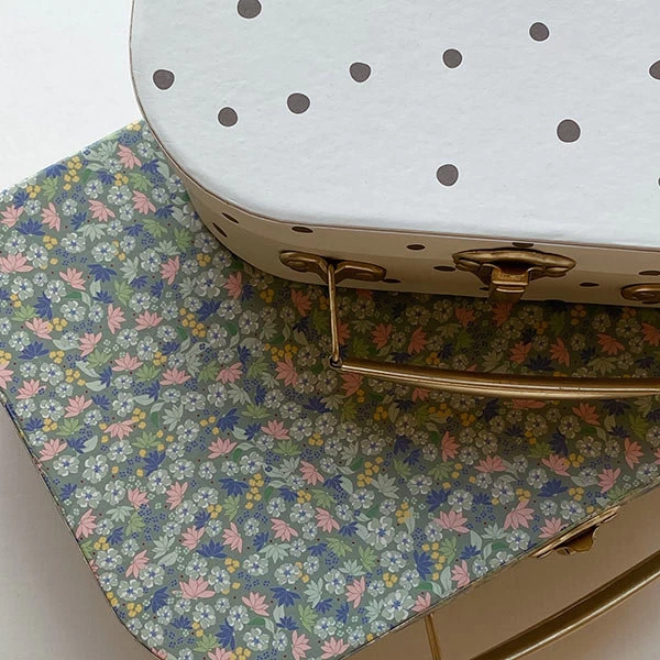 Prachtige set van 2 koffertjes Louloudi en Melodie. Ideaal voor het bewaren van kleine spulletjes en mooi als decoratie. De koffertjes zijn gemaakt uit FSC karton en afgewerkt met een metalen sluiting en handgreep.