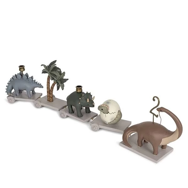 Met verjaardagstrein Dinomite kleedt je elke verjaardagstafel mooi aan. Deze prachtige verjaardagstrein is bruikbaar voor alle leeftijden. De set wordt geleverd inclusief 2 kandelaars en cijfers voor elke leeftijd tot 99 jaar. Deze prachtige trein is handgemaakt uit polyresin en kan niet bewegen. Start een mooie traditie door elk jaar de trein uit te pakken en bij de verjaardagstaart neer te zetten.