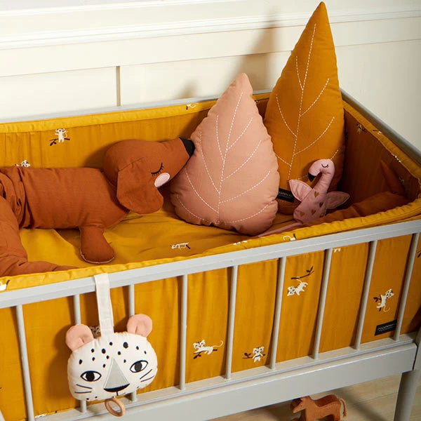 Met kussen Leaf Ochre creëer je een gezellige sfeer in huis en in de kinderkamer. Dit leuke kussen combineert prachtig met het bijpassende beddengoed, de muziekdoosjes, knuffels, wandhaken en andere mooie interieur accessoires. De prachtige kleuren en designs vrolijken elke kamer instant op. Het is een zacht en decoratief kussen, afgewerkt met mooi boorduurwerk.