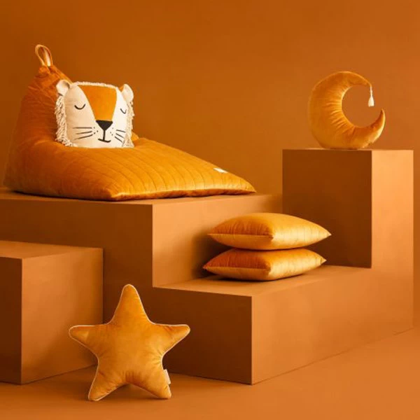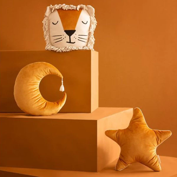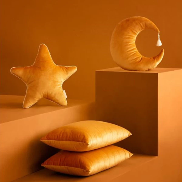 Kussen Pierrot Moon Velvet Farniente Yellow is een decoratief kussen in de vorm van de maan. Combineer dit maankussen met tal van andere stijlvolle kussens en maak de kinderkamer helemaal af!