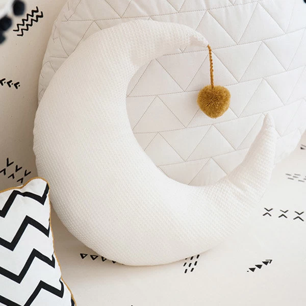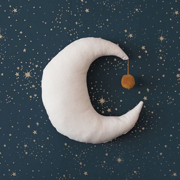 Kussen Pierrot Moon Natural is een decoratief kussen in de vorm van de maan. Combineer dit maankussen met tal van andere stijlvolle kussens en maak de kinderkamer helemaal af!