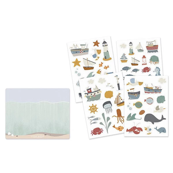 Met deze raamstickers in prachtig Sailors Bay thema van Little Dutch maak je van elk raam een kunstwerk! Kom, laat je creativiteit zien! Gebruik ze in de auto of thuis. Op een raam, een spiegel, de bijbehorende papieren achtergrond of zelfs een glazen pot! De 4 vellen met meer dan 50 raamstickers vol met verschillende figuurtjes kun je op tal van manieren gebruiken. De raamstickers zijn eenvoudig te verwijderen en opnieuw te gebruiken voor nieuwe creaties. Leuk, makkelijk en zeer vermakelijk voor je kleintje!