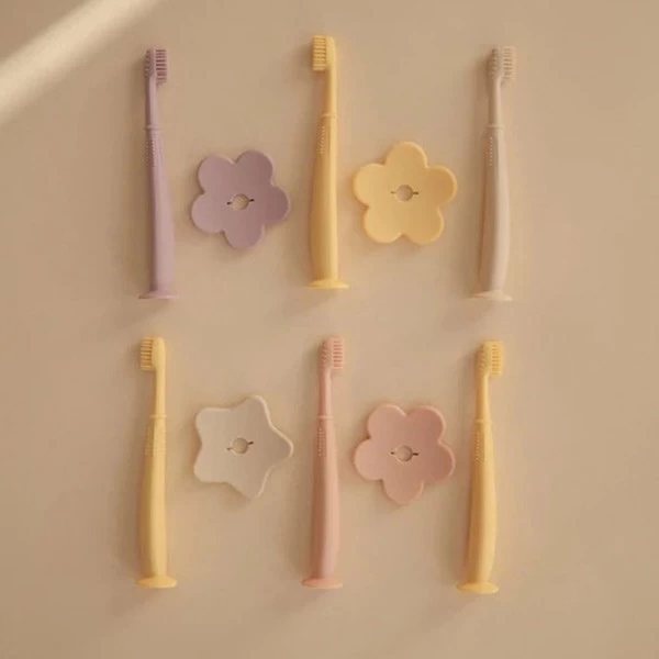 Met deze kindertandenborstel Flower Pale daffodil wordt tanden poetsen super leuk! De tandenborstel is gemaakt uit zacht voedselveilig siliconen materiaal met zachte borstelharen die het tandvlees en de tanden van je mini zachtjes reinigen. Deze kindertandenborstel is met zijn speelse design, ergonomische vorm en veilige materiaal geschikt voor alle leeftijden. Zo masseer je het tandvlees van je baby, leren kleine poetsers veilig en plezierig poetsen met de verwijderbare beschermkap die voorkomt dat de tandenborstel te diep de mond in gaat en vinden zelfs grote kinderen het nog steeds fijn om met deze tandenborstel te poetsen. Deze kindertandenborstel blijft mooi rechtop staan dankzij de handige zuignap onderaan.