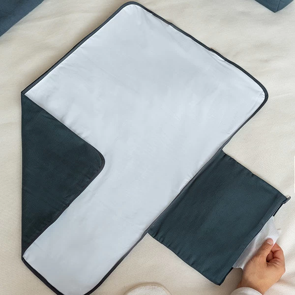 Dit verschoonmatje Carbon Blue uit de Nobodinoz Baby on the Go collectie is praktisch en opvouwbaar. Je neemt het heel gemakkelijk overal mee naartoe. Ideaal om je kindje op een comfortabele manier te verschonen. De waterdichte voering maakt een eenvoudige en snelle reiniging mogelijk. Het verschoonmatje is uitgerust met een waterdicht opbergvakje met rits, perfect om alle benodigdheden zoals een luier of doekjes in op te bergen. Dankzij zijn strakke vormgeving en neutrale kleur past dit verschoonmatje perfect bij elke stijl.
