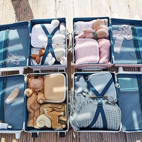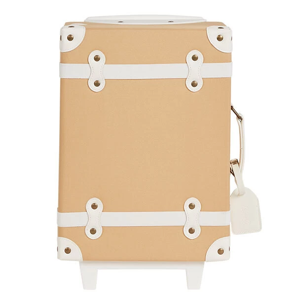 De Olli Ella See-Ya reiskoffer Butterscotch is een leuke trolley en praktische koffer voor jonge kinderen van 2 tot 6 jaar. Deze reiskoffer is bovendien ook de ideale koffer voor het opbergen en vervoeren van al dat favoriete speelgoed en zachte knuffels. De Olli Ella See-Ya reiskoffer is een leuke trolley die vrolijk met je kind overal mee naar toe rolt, naar het vliegveld, het station, oma en opa, noem maar op. De koffer heeft een handvat aan de zijkant waardoor je hem kan dragen of rollen + elastische banden waar je kind zijn of haar favoriete knuffel tussen kan steken om mee te nemen op reis.