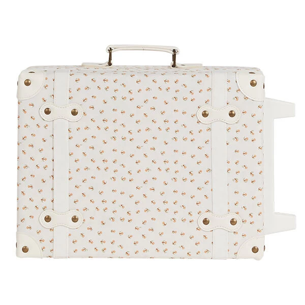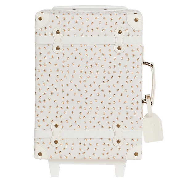 De Olli Ella See-Ya reiskoffer Leafed Mushroom is een leuke trolley en praktische koffer voor jonge kinderen van 2 tot 6 jaar. Deze reiskoffer is bovendien ook de ideale koffer voor het opbergen en vervoeren van al dat favoriete speelgoed en zachte knuffels. De Olli Ella See-Ya reiskoffer is een leuke trolley die vrolijk met je kind overal mee naar toe rolt, naar het vliegveld, het station, oma en opa, noem maar op. De koffer heeft een handvat aan de zijkant waardoor je hem kan dragen of rollen + elastische banden waar je kind zijn of haar favoriete knuffel tussen kan steken om mee te nemen op reis.