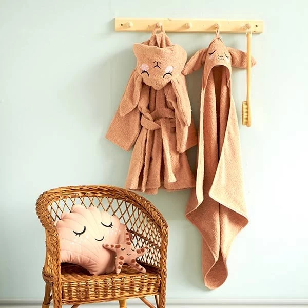 Met badjas Bunny Rose houdt je jouw kindje heerlijk warm en droog na het bad, de douche of het zwemmen. Deze mooie badjas is gemaakt uit knuffelzacht organisch katoen, afgewerkt met geborduurde details, praktische drukkopen, een handige kap en een riem.
