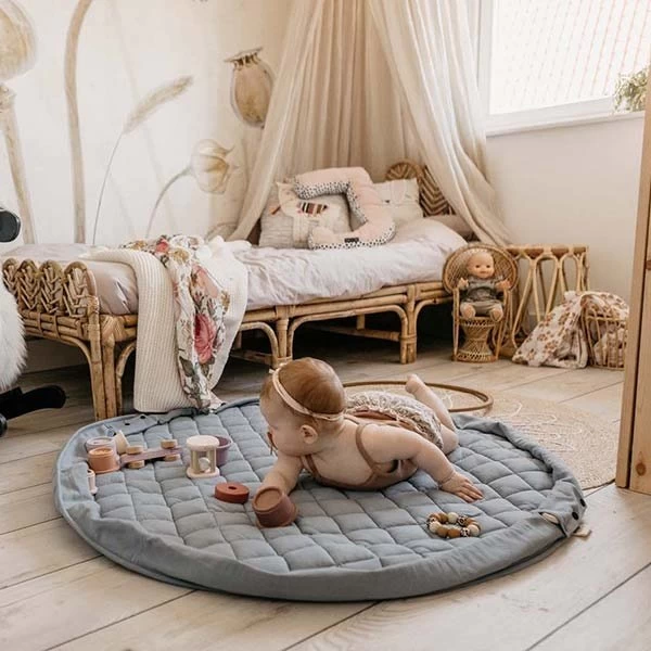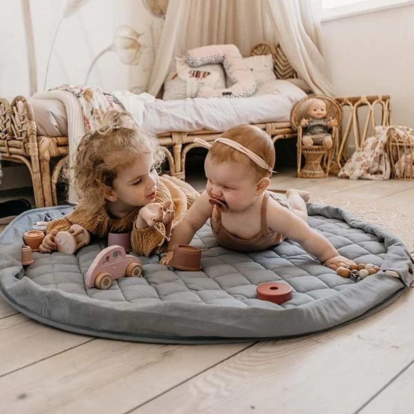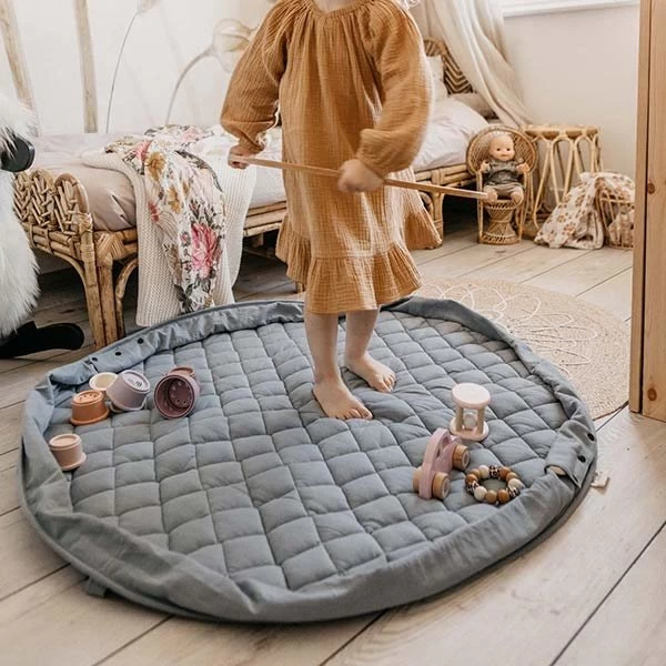 Kenmerken van deze Play and Go Soft speelmat opbergzak Organic Dusty Blue: