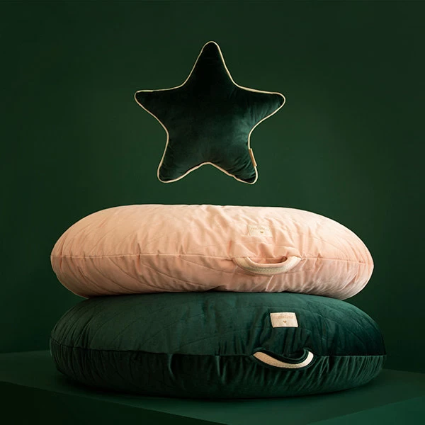 Ster kussen Aristote Jungle Green is de ideale decoratie bij het aankleden van alle gezellige hoekjes in huis. Het kussen is gemaakt uit fluweelzacht materiaal, met polyester vulling. Was dit kussen incl. de vulling met de hand en laat het al liggend drogen. Combineer dit kussen vrolijk met alle andere kussens van Nobodinoz, hun vrolijke prints en verschillende maten zorgen voor de ideale sfeer en decoratie in de kinderkamer en het interieur. Met al deze knappe kussens in je tipi, speelhoek, zetel en bed, wordt het lekker gezellig. Alle Nobodinoz produkten worden in Spanje en Frankrijk gemaakt. Het materiaal van dit kussen draagt het Oeko-Tex standaard 100 label, wat een garantie geeft dat er geen schadelijke stoffen in zitten.