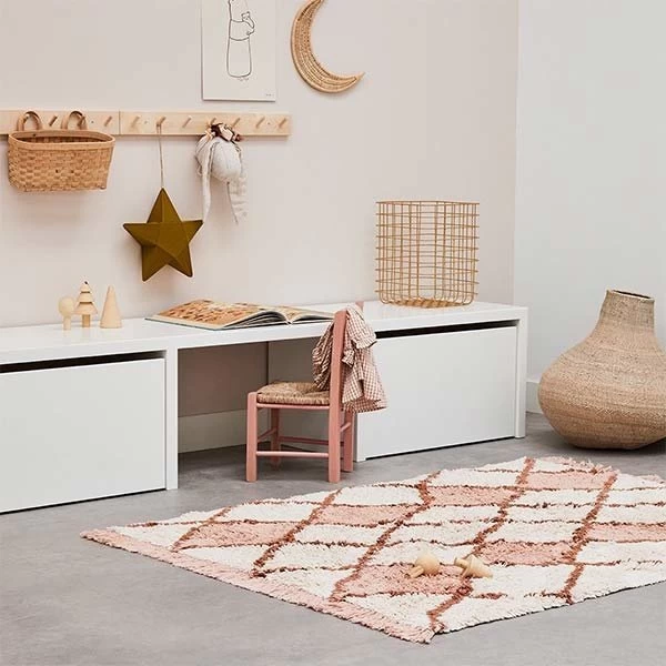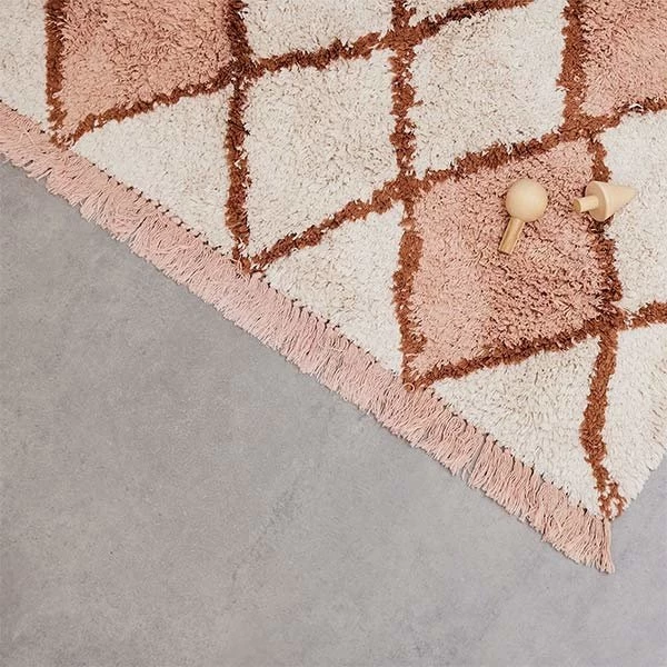 Tapijt Evie Diamond is een heerlijk zacht vloerkleed, ideaal voor kleine voetjes en om op te spelen. Het is een prachtige decoratie voor de kinderkamer. Dit tapijt mag je zelf in de wasmachine wassen. Elk vloerkleed van Tapis Petit is uniek omdat ze met de hand gemaakt worden. Het merk voelt zich verantwoordelijk voor de mensen en het milieu. Daarom werken ze volgens het Fair Trade principe. Alle gebruikte materialen en verpakkingen zijn sustainable. Zowel mannen als vrouwen krijgen eerlijke en gelijke lonen.