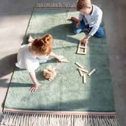 Tapijt Julie ocean is een heerlijk zacht vloerkleed, ideaal voor kleine voetjes en om op te spelen. Het is een prachtige decoratie voor de kinderkamer. Dit tapijt mag je zelf in de wasmachine wassen. Elk vloerkleed van Tapis Petit is uniek omdat ze met de hand gemaakt worden. Het merk voelt zich verantwoordelijk voor de mensen en het milieu. Daarom werken ze volgens het Fair Trade principe. Alle gebruikte materialen en verpakkingen zijn sustainable. Zowel mannen als vrouwen krijgen eerlijke en gelijke lonen.